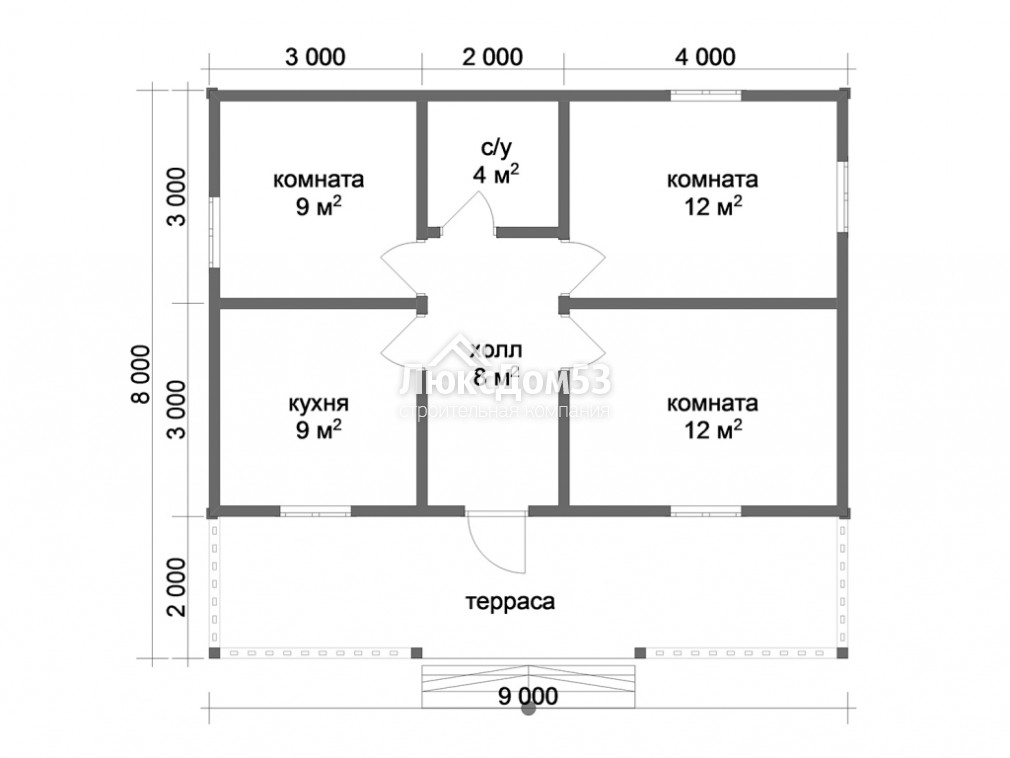Одноэтажный дом 9х8 м