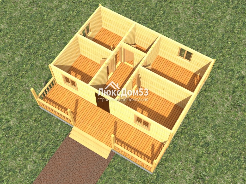 Первого этажа брусовые, из строганного профилированного бруса 90×140мм. Толщина перегородок 90мм.