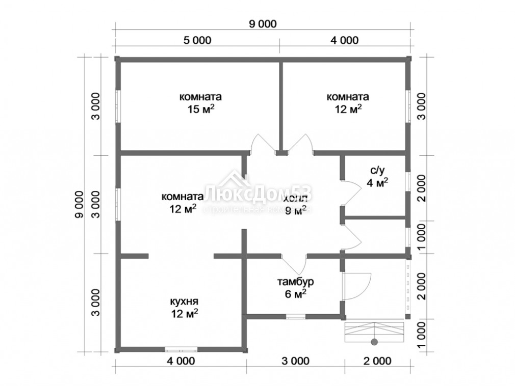 Веранда 6×2 м (обшивается вагонкой с внешней стороны), без утепления