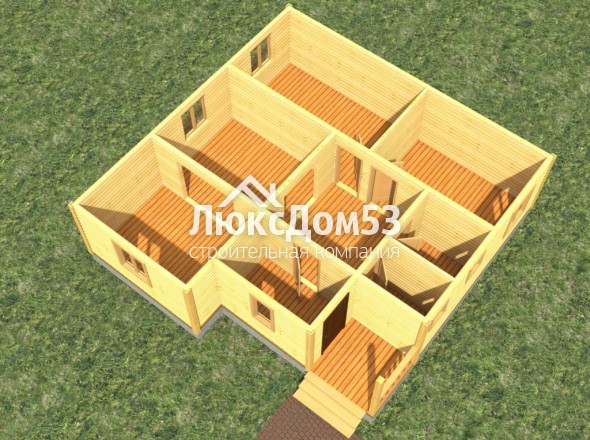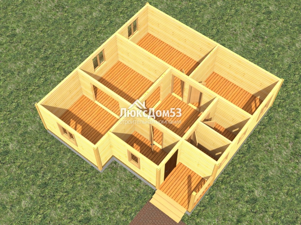 Первого этажа брусовые, из строганного профилированного бруса 90×140мм. Толщина перегородок 90мм.