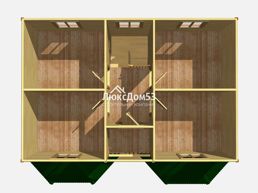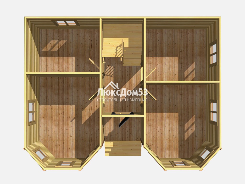 Второго этажа брусовые, из строганного профилированного бруса 90х140мм. Толщина перегородок 90мм (если предусмотрены проектом).