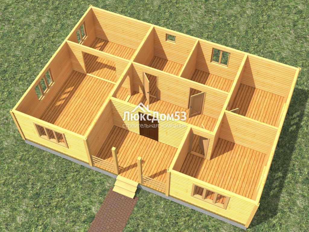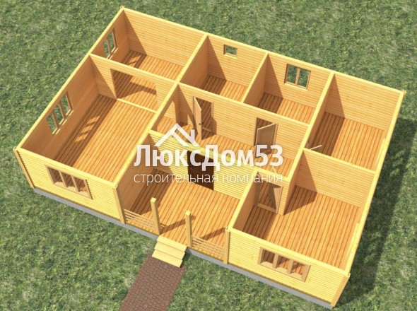 Первого этажа брусовые, из строганного профилированного бруса 90×140мм. Толщина перегородок 90мм.