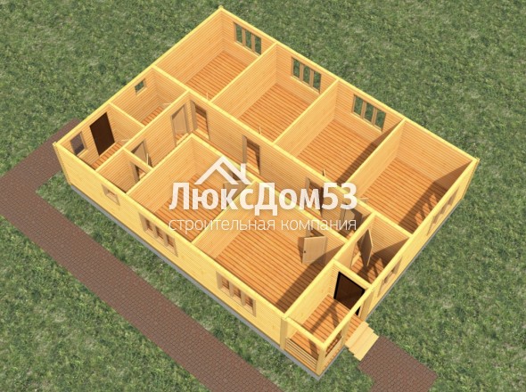 Первого этажа брусовые, из строганного профилированного бруса 90×140мм. Толщина перегородок 90мм.