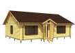 Опорные строганные столбы 100х150мм устанавливаются с компенсаторами усадки.Оконные и дверные проемы сруба делаются чуть выше столярных изделий. Усадочный зазор заполняется мягким утеплителем и закрывается наличником. |