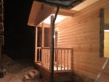 Ограждение из плоских фигурных балясин. Столбы из строганного бруса 100х150мм. На террасе полы из террасной доски, укладываются с зазором 5мм для стока воды. |