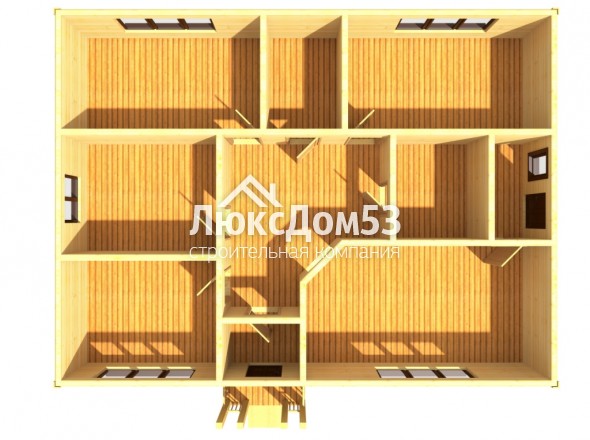 Первого этажа брусовые, из строганного профилированного бруса 90×140мм. Толщина перегородок 90мм. |