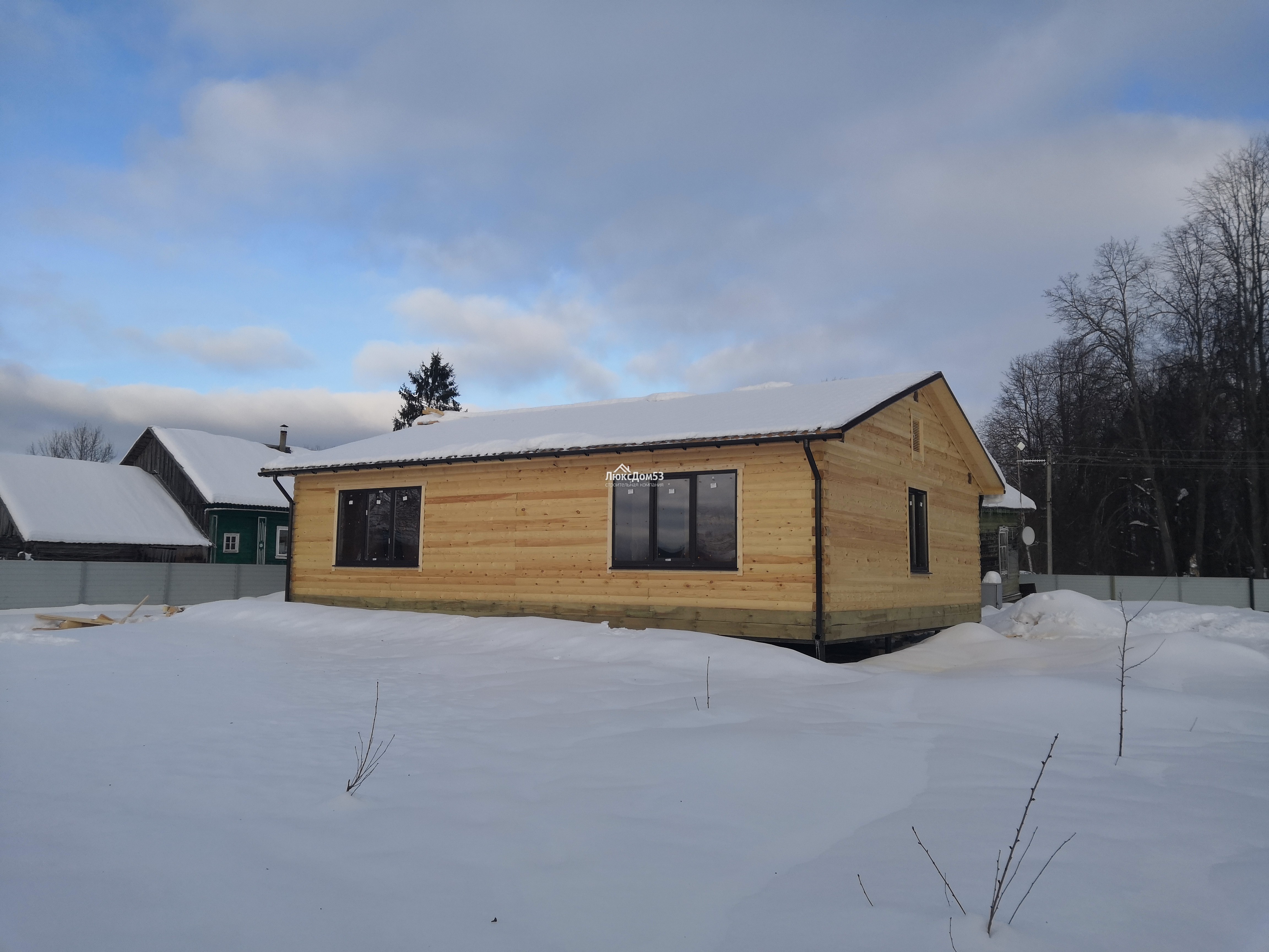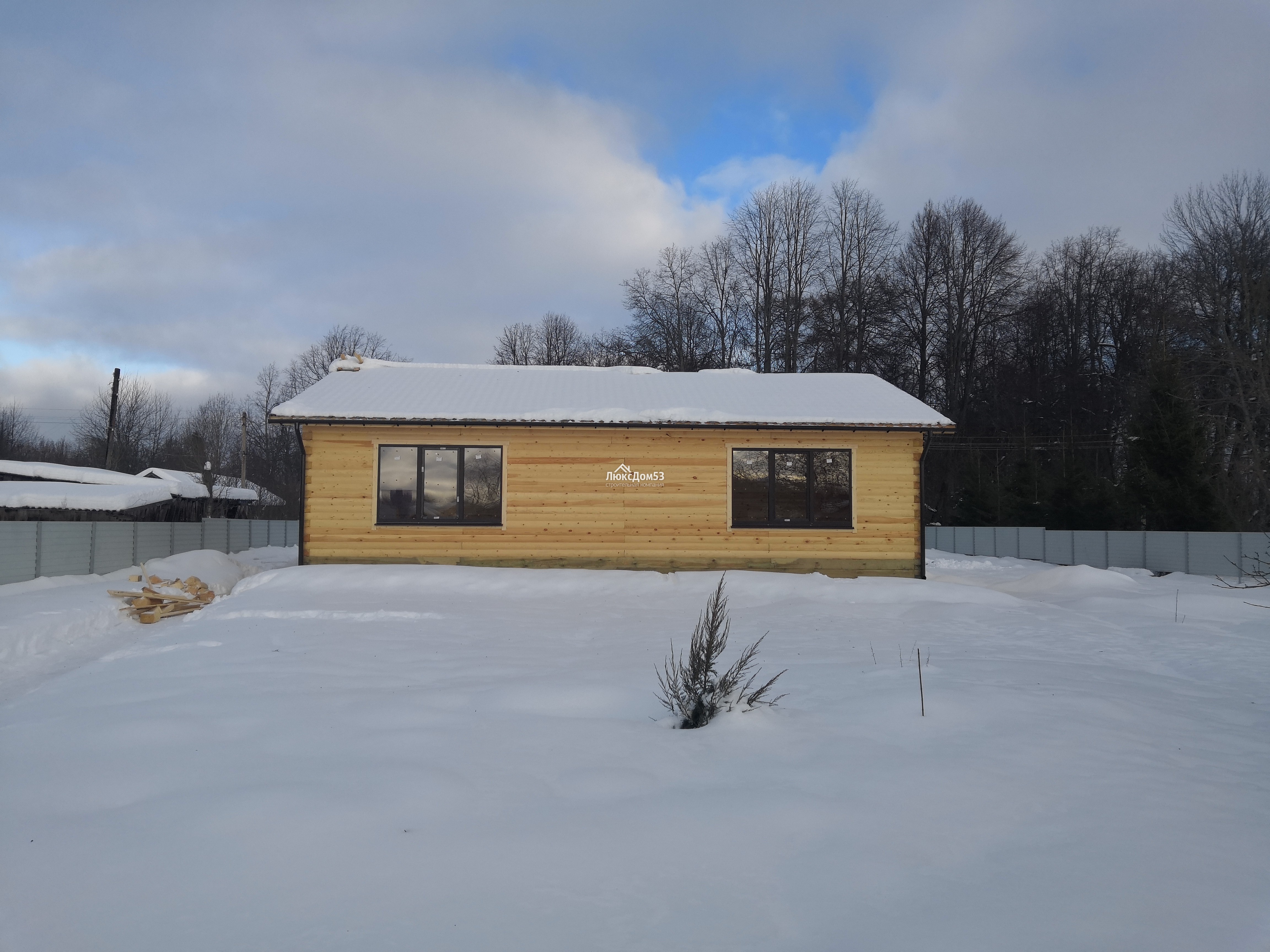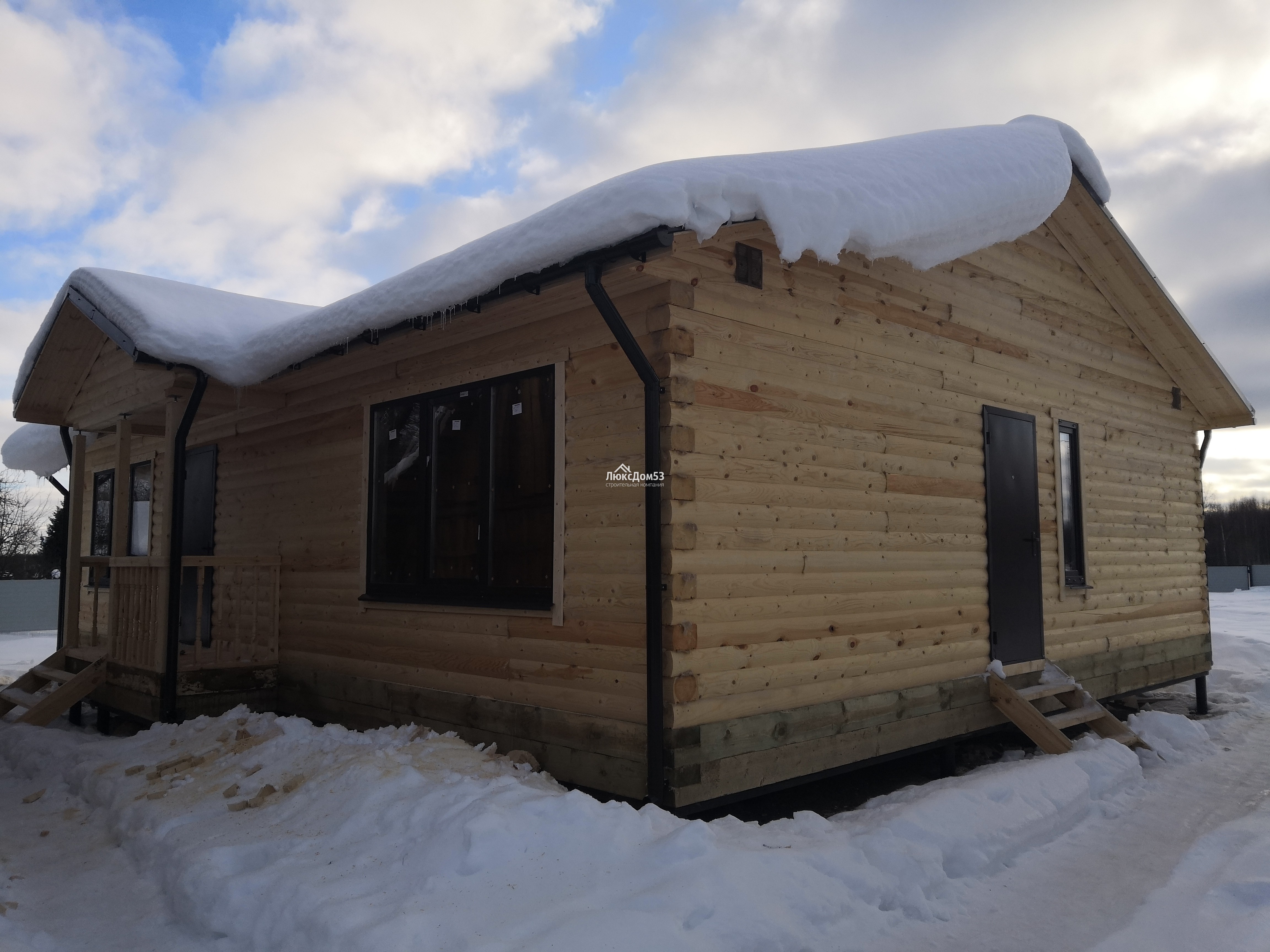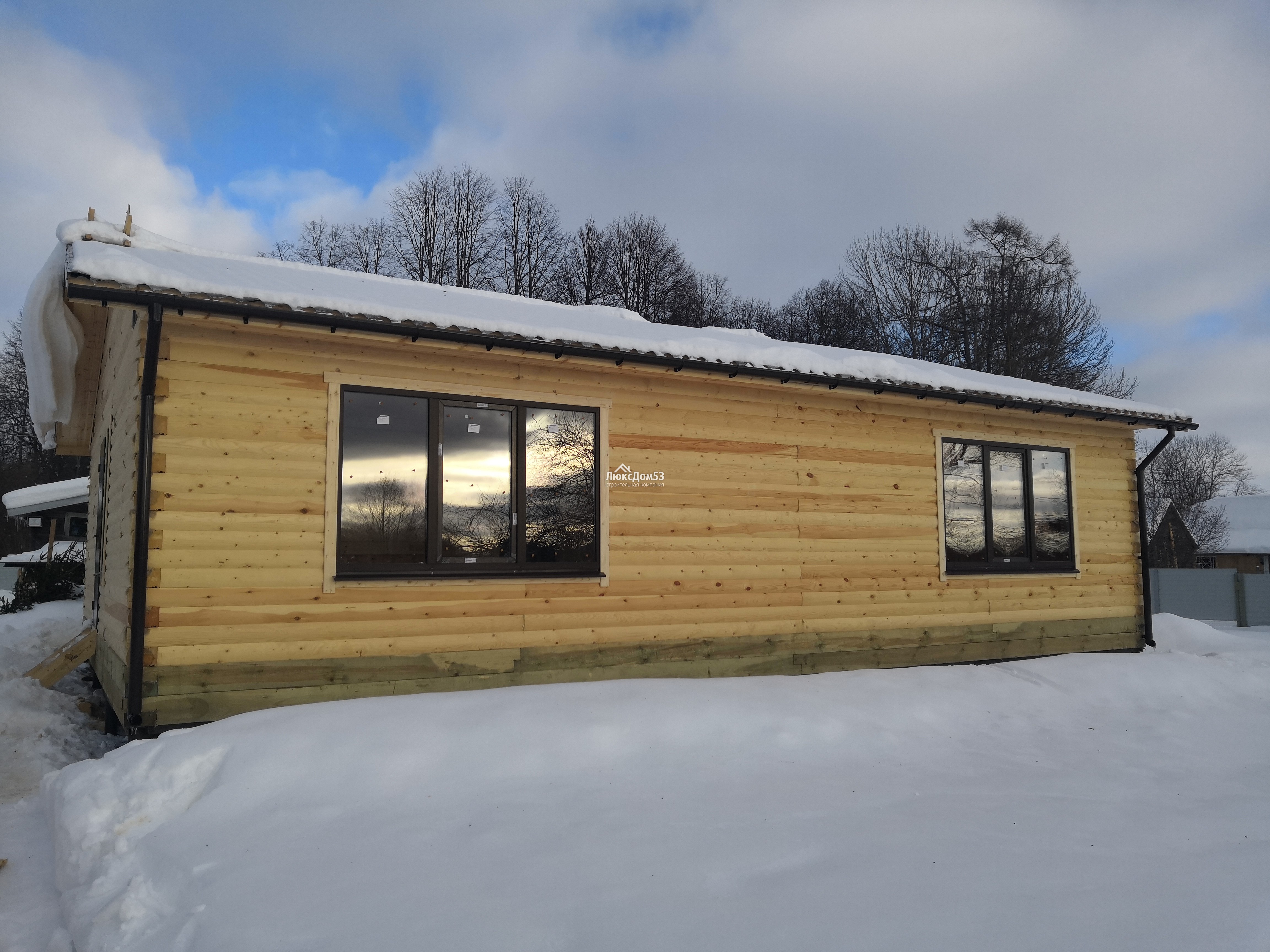Деревянные, с двойным остеклением и обсадной коробкой. Стандартный размер окна 1.0×1.2м. с фурнитурой (возможен другой размер по желанию заказчика). Кол-во и размер по проекту.(В оконные проемы впиливаются ройки) |
