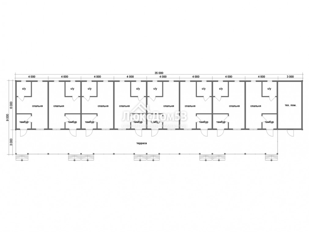Одноэтажная гостиница 9х35 м