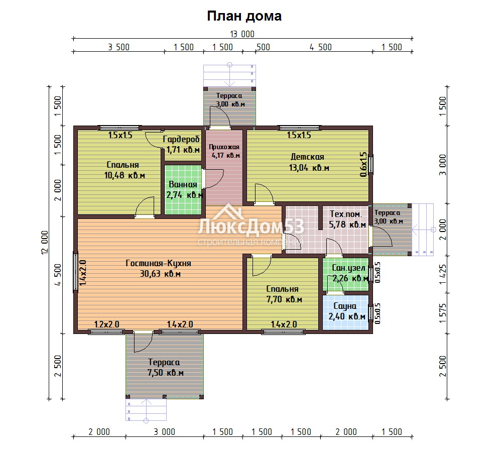 Одноэтажный дом 12х13 м