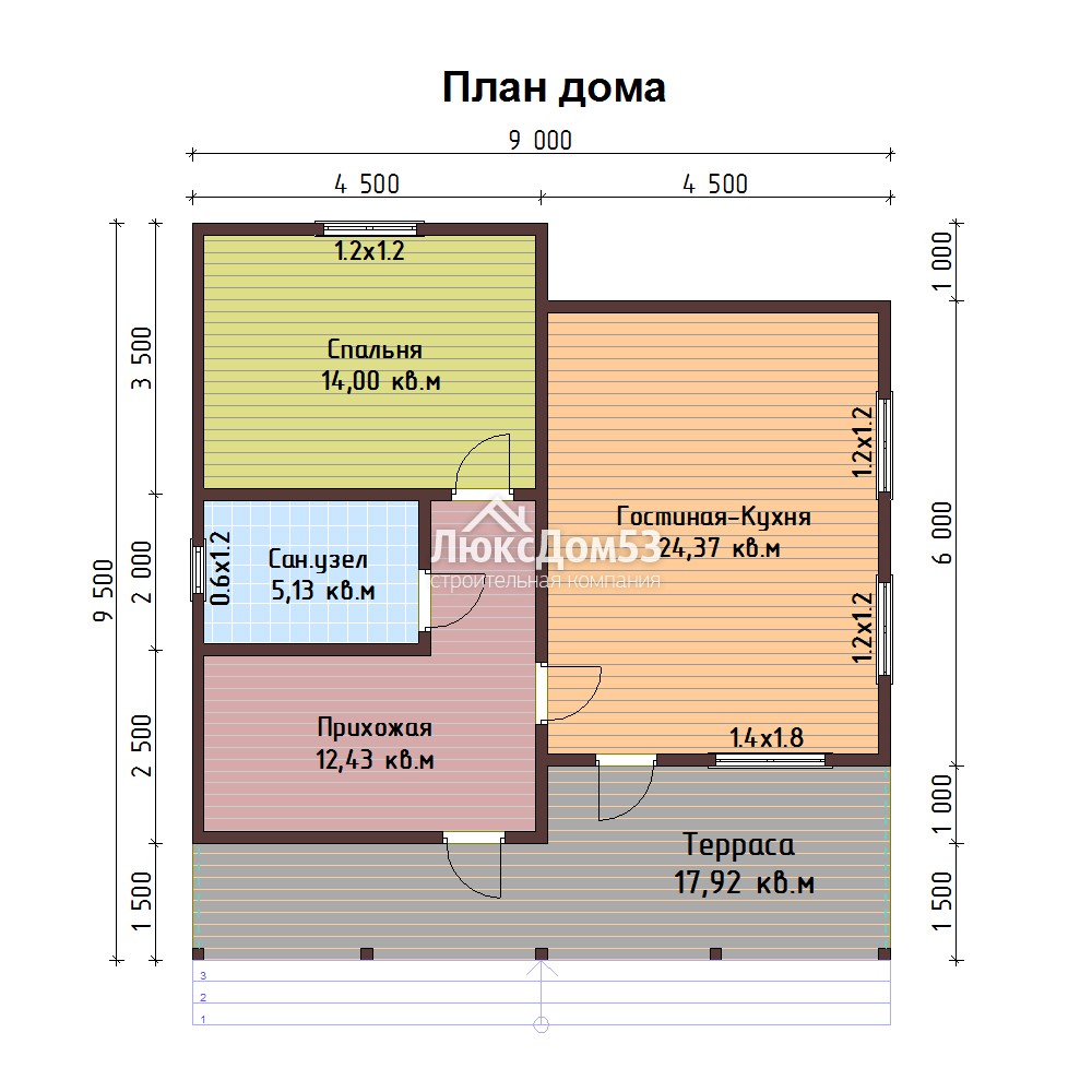 Одноэтажный дом 9х9.50 м