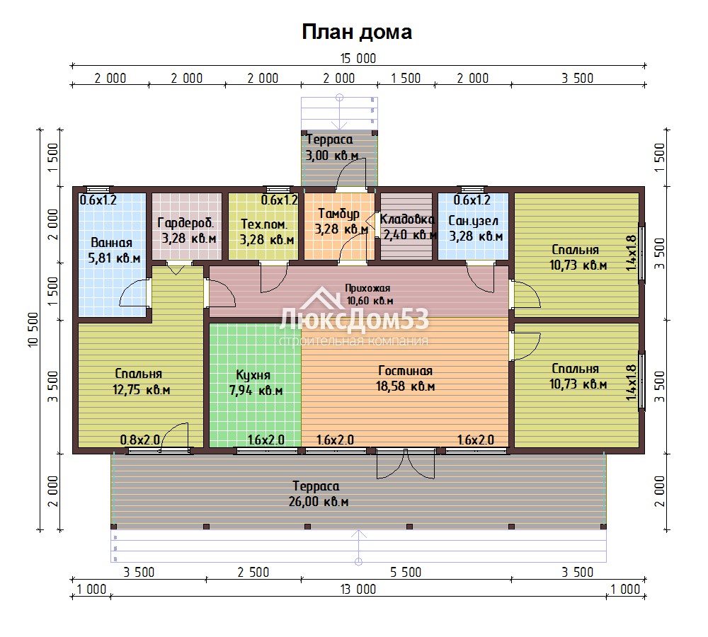 Веранда 6×2 м (обшивается вагонкой с внешней стороны), без утепления