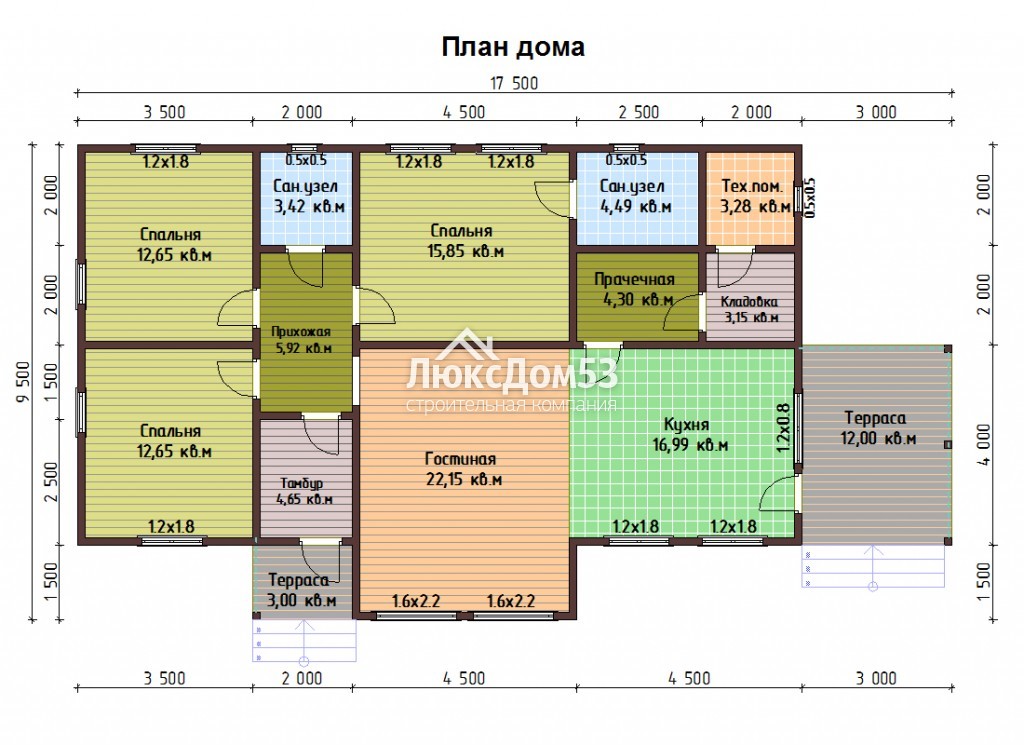 Одноэтажный дом 9.50х17.50 м
