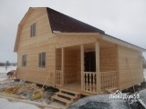 С перилами столбами и точеными балясинами. Ступени на лестнице из строганной доски 40×200мм. Тетива из строганного бруса 100х150мм.