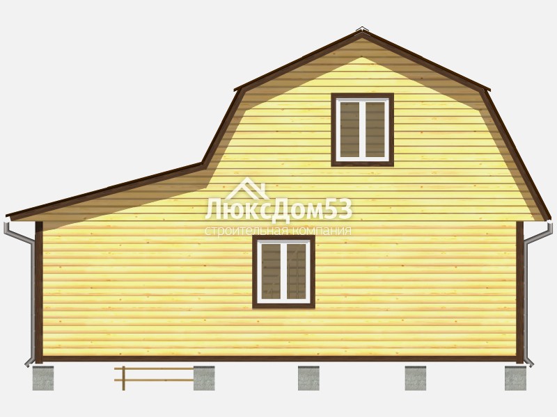 Вагонка сорт «В» принудительной сушки 16х90х6000мм: стены первого этажа,фронтоны. Отделочный материал монтируется с технологическим зазором 2см через контррейку.