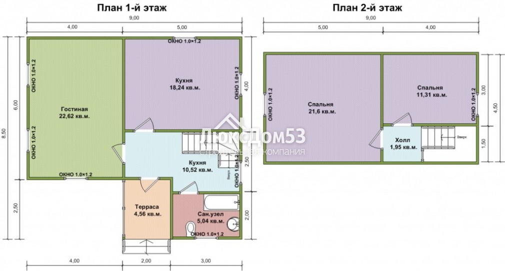 Деревянные, с двойным остеклением и обсадной коробкой. Стандартный размер окна 1.0×1.2м. с фурнитурой (возможен другой размер по желанию заказчика). Кол-во и размер по проекту.