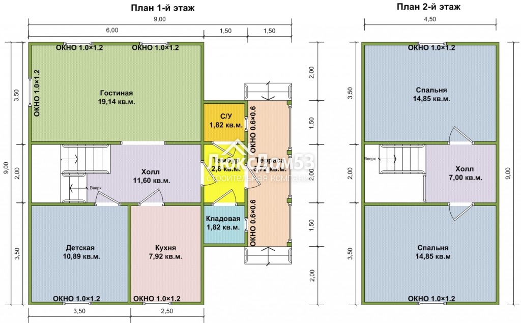 Деревянные, с двойным остеклением и обсадной коробкой. Стандартный размер окна 1.0×1.2м. с фурнитурой (возможен другой размер по желанию заказчика). Кол-во и размер по проекту. |