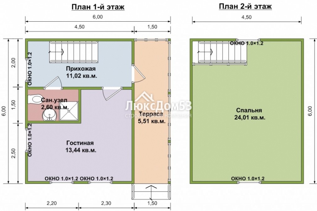 Деревянные, с двойным остеклением и обсадной коробкой. Стандартный размер окна 1.0×1.2м. с фурнитурой (возможен другой размер по желанию заказчика). Кол-во и размер по проекту.