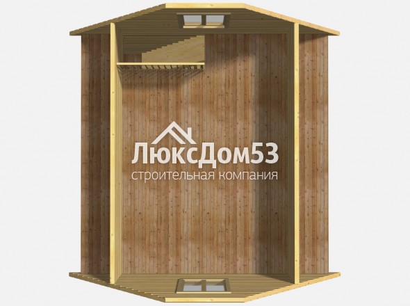 Промежуточные и угловые стойки из бруса 40х200мм (1 сорт).Собирается каркас (стойки) из доски 40х200мм (1 сорт). Стойки каркаса устанавливаются через 59см, используются раскосы и ригель доска 40х100мм (1 сорт).