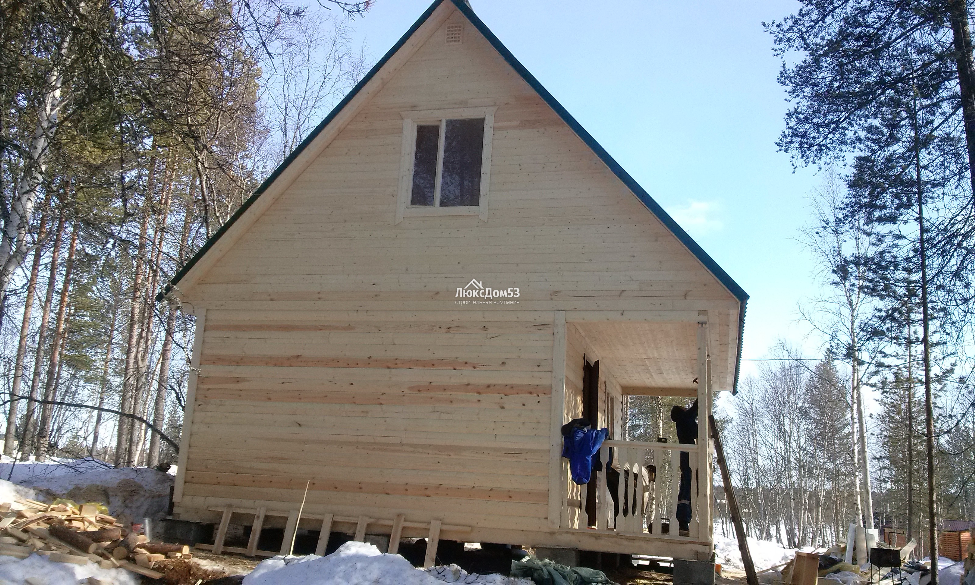 Вагонка сорт «В» принудительной сушки 16х90х6000мм: стены первого этажа,фронтоны. Отделочный материал монтируется с технологическим зазором 2см через контррейку.