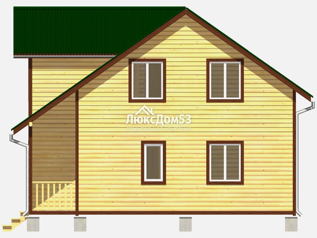 Вагонка сорт «В» принудительной сушки 16х90х6000мм: стены первого и полуторного этажа, фронтоны. Отделочный материал монтируется с технологическим зазором 2см через контррейку.
