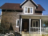Вагонка сорт «В» принудительной сушки 16х90х6000мм: стены первого и полуторного этажа, фронтоны. Отделочный материал монтируется с технологическим зазором 2см через контррейку.