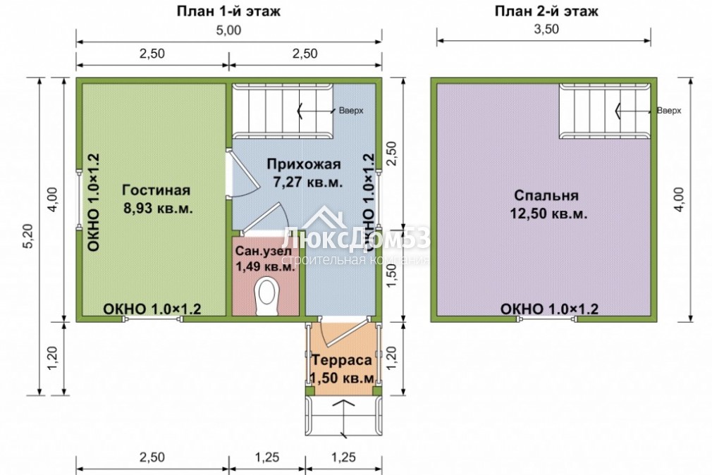 С перилами столбами и точеными балясинами. Ступени на лестнице из строганной доски 40×200мм. Тетива из строганного бруса 100х150мм.