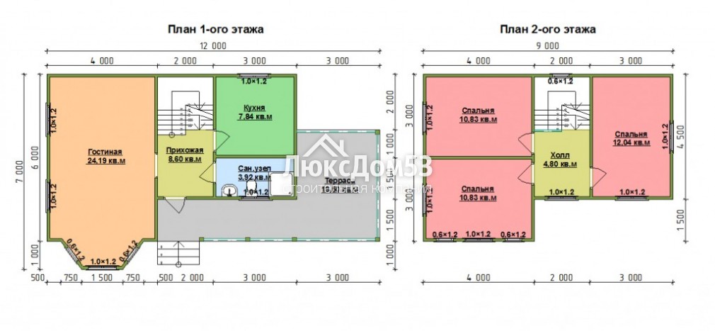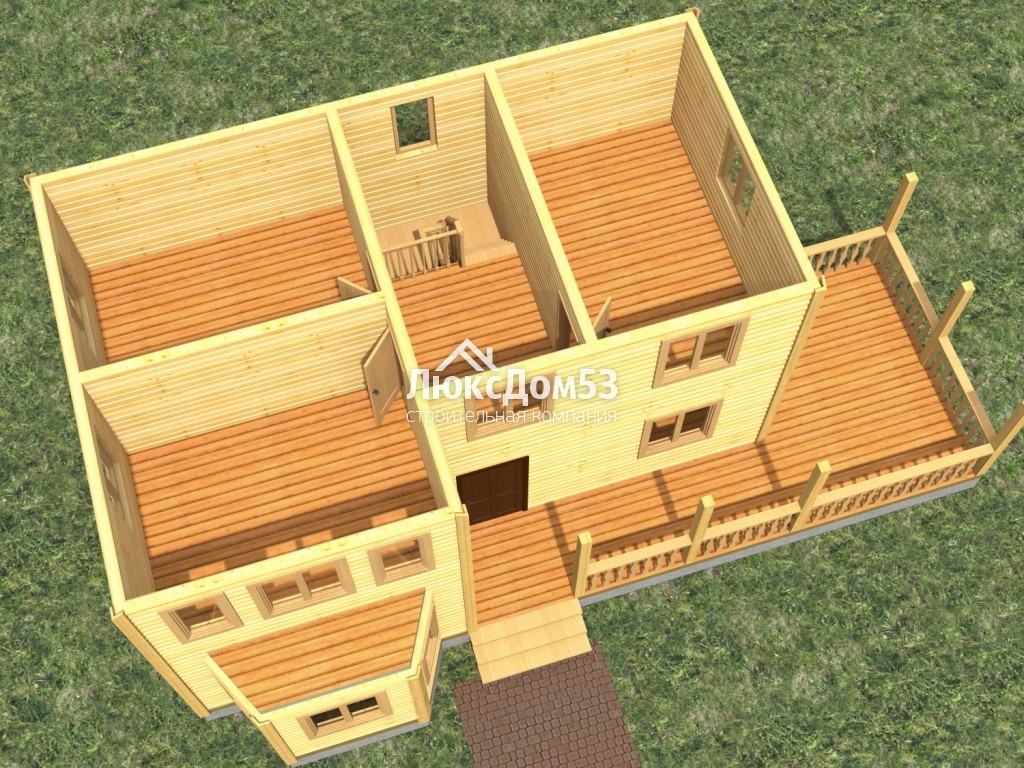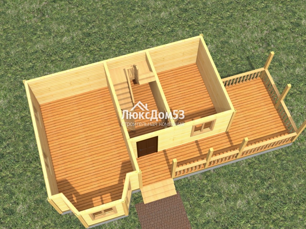 Первого этажа сплошной из обрезной доски 20-22мм (1 сорт). Второго этажа не предусмотрен. В качестве чернового пола второго этажа выступает потолок первого этажа. |