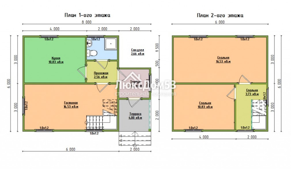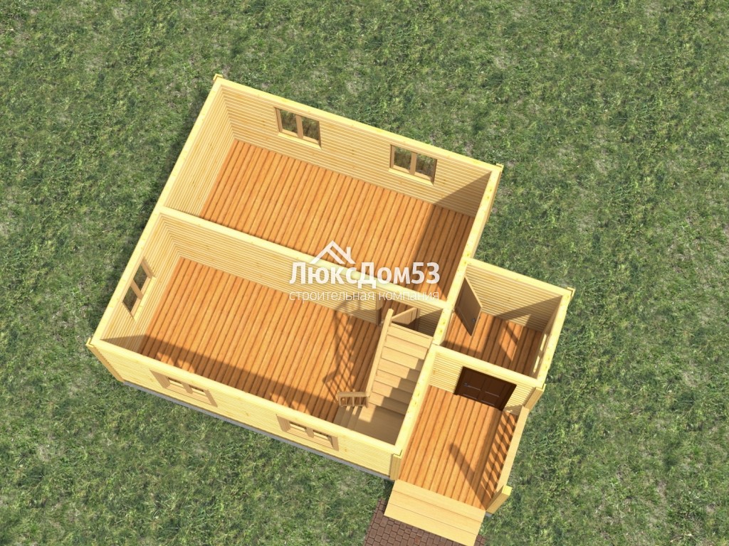 Первого этажа сплошной из обрезной доски 20-22мм (1 сорт). Второго этажа не предусмотрен. В качестве чернового пола второго этажа выступает потолок первого этажа. |