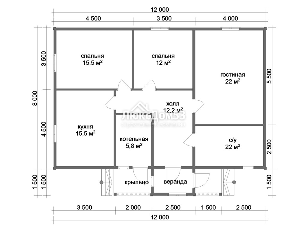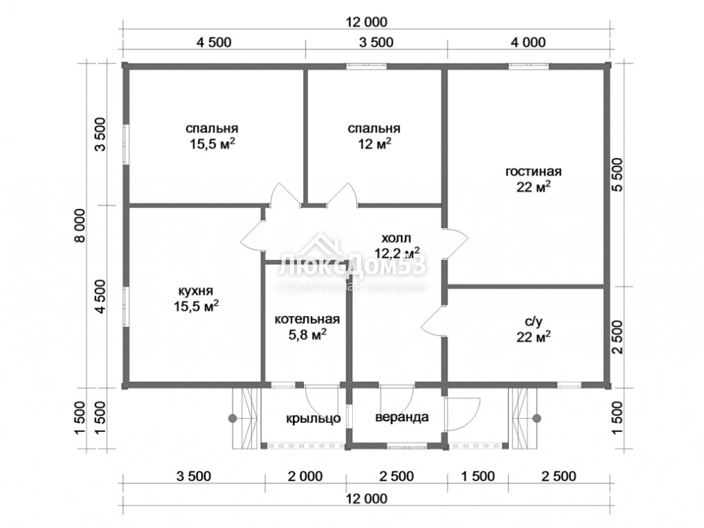 Веранда 6×2 м (обшивается вагонкой с внешней стороны), без утепления