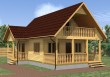 С перилами столбами и точеными балясинами. Ступени на лестнице из строганной доски 40×200мм. Тетива из строганного бруса 100х150мм. |