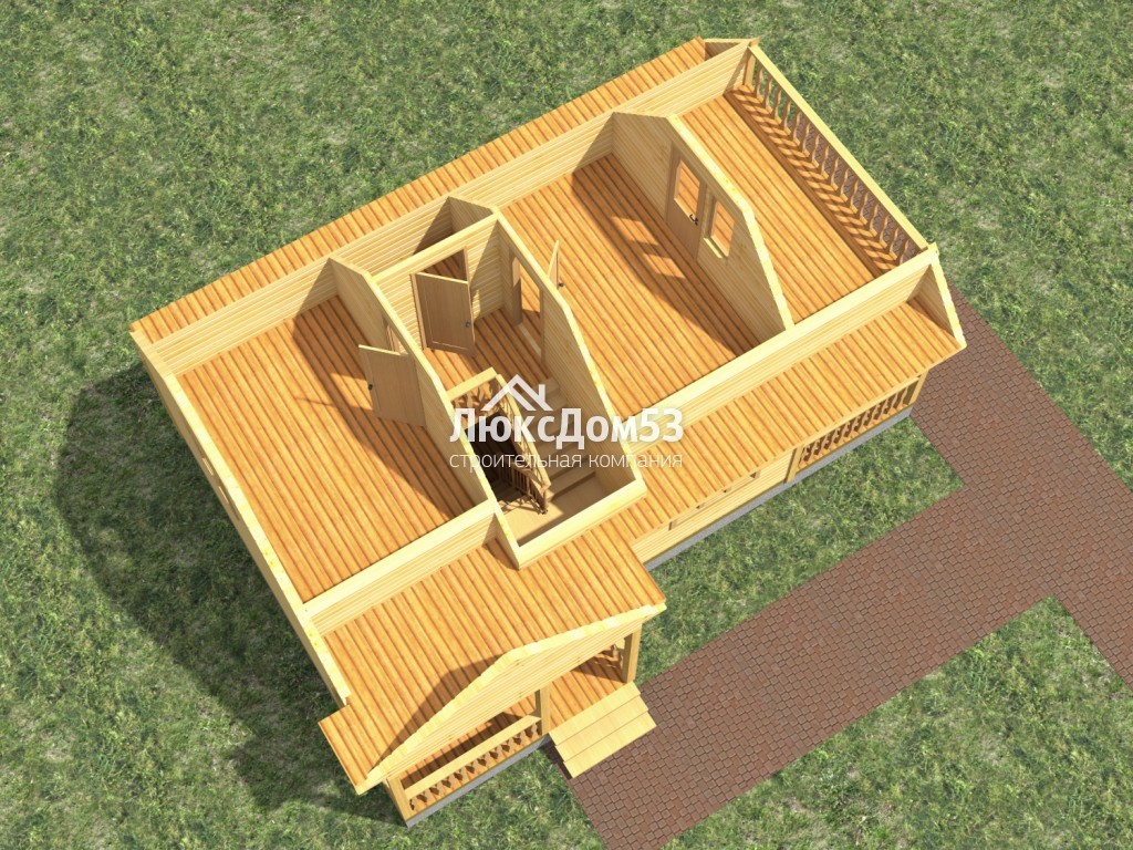 Первого этажа сплошной из обрезной доски 20-22мм (1 сорт). Мансардного этажа не предусмотрен. В качестве чернового пола мансардного этажа выступает потолок первого этажа. |
