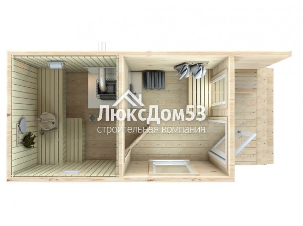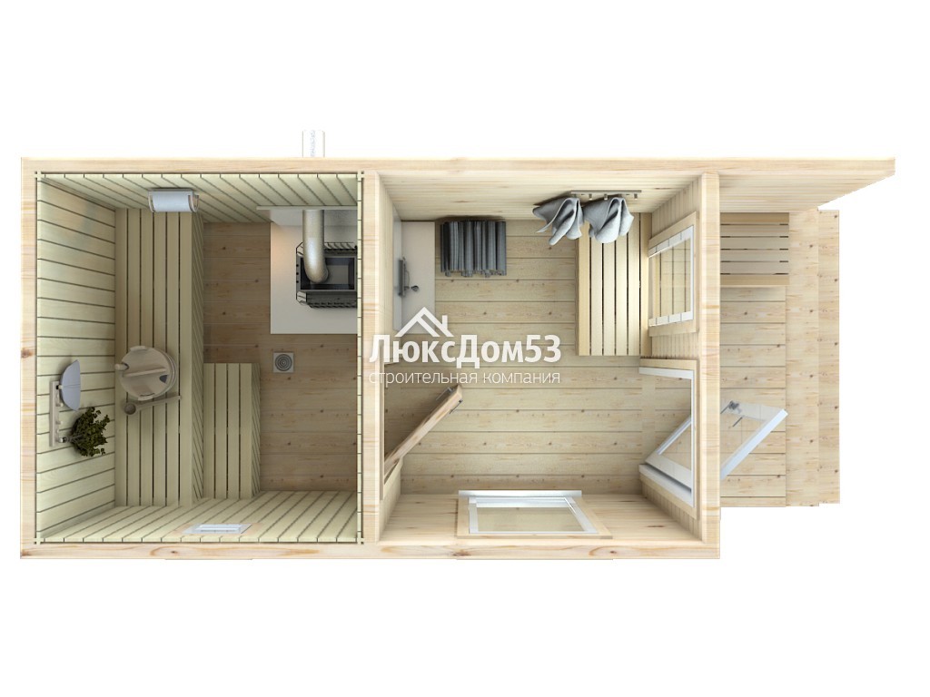Стены и потолок обшиваются осиновой вагонкой класса "А" с прокладкой высокотемпературной отражающей изоляции (фольги). Пологи класс "А" двухъярусные из строганной осиновой доски 27×90мм.