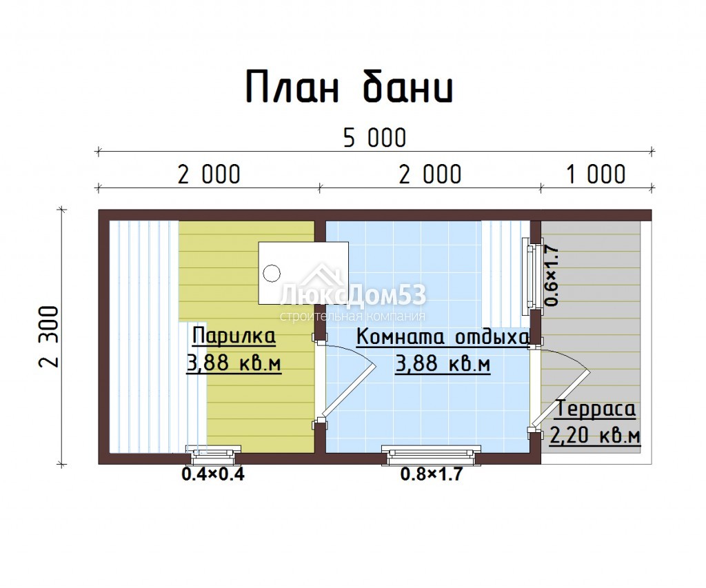 Деревянные, с двойным остеклением. Стандартный размер окна 800х800 в моечном отделении 600х600, в парном отделении 400х400 с фурнитурой (возможен другой размер по желанию заказчика). Кол-во и размер по проекту.