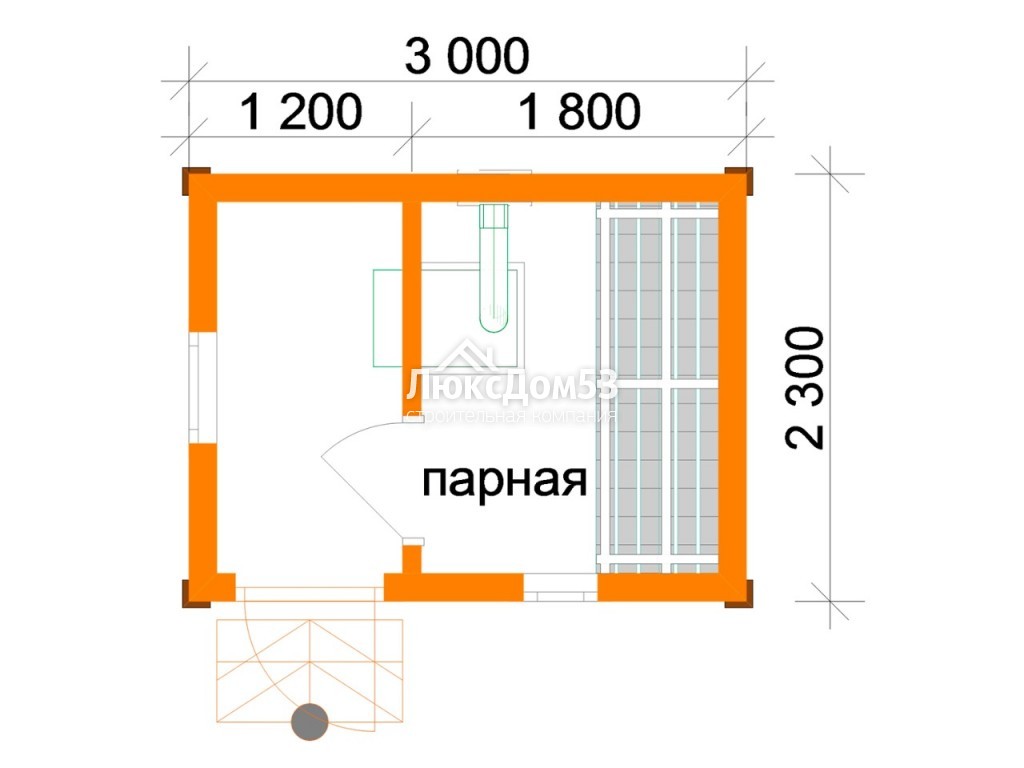 Моечные отделение Слив в центре пола, вывод трубы снизу бани,для стока воды