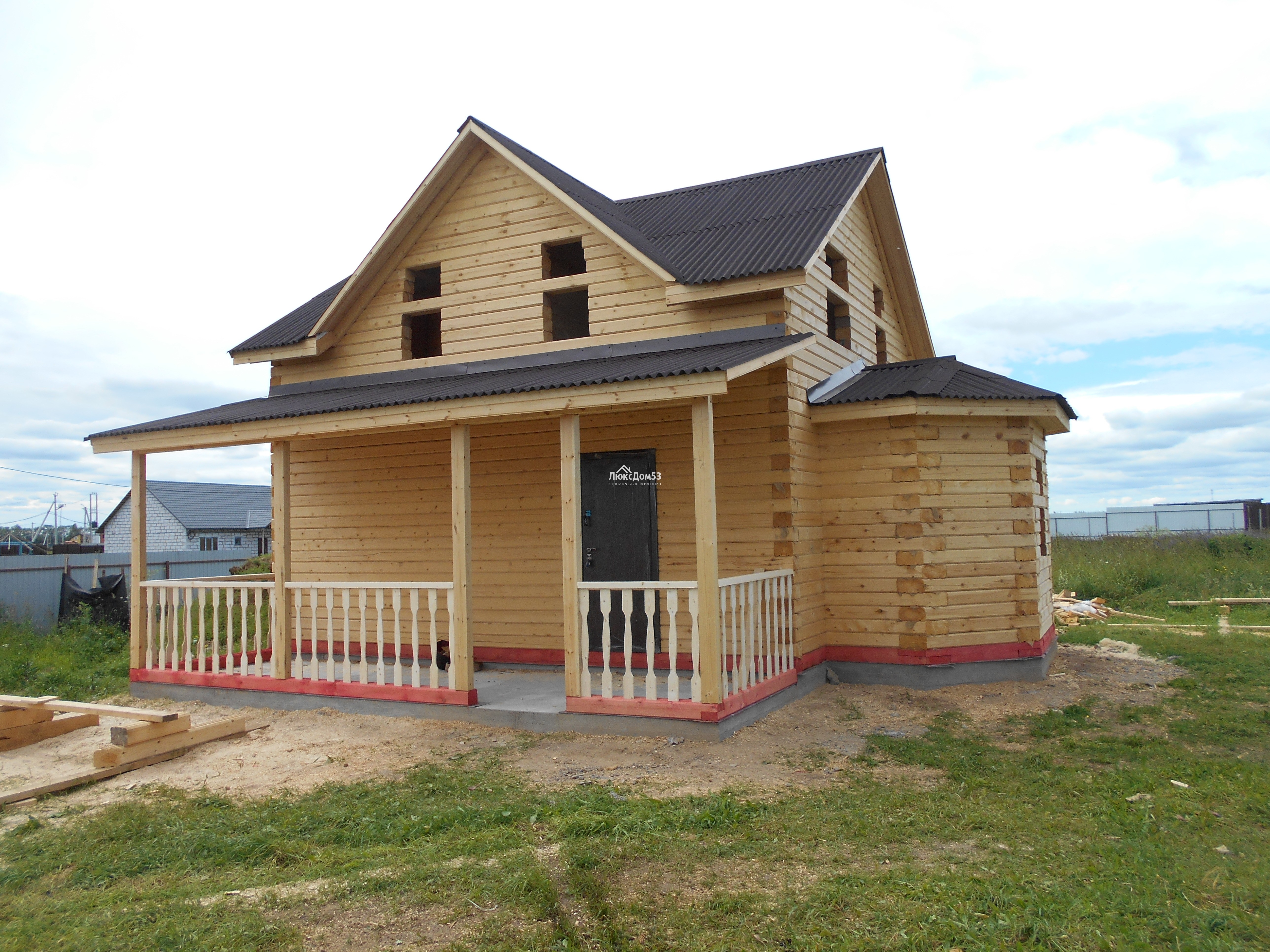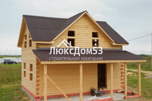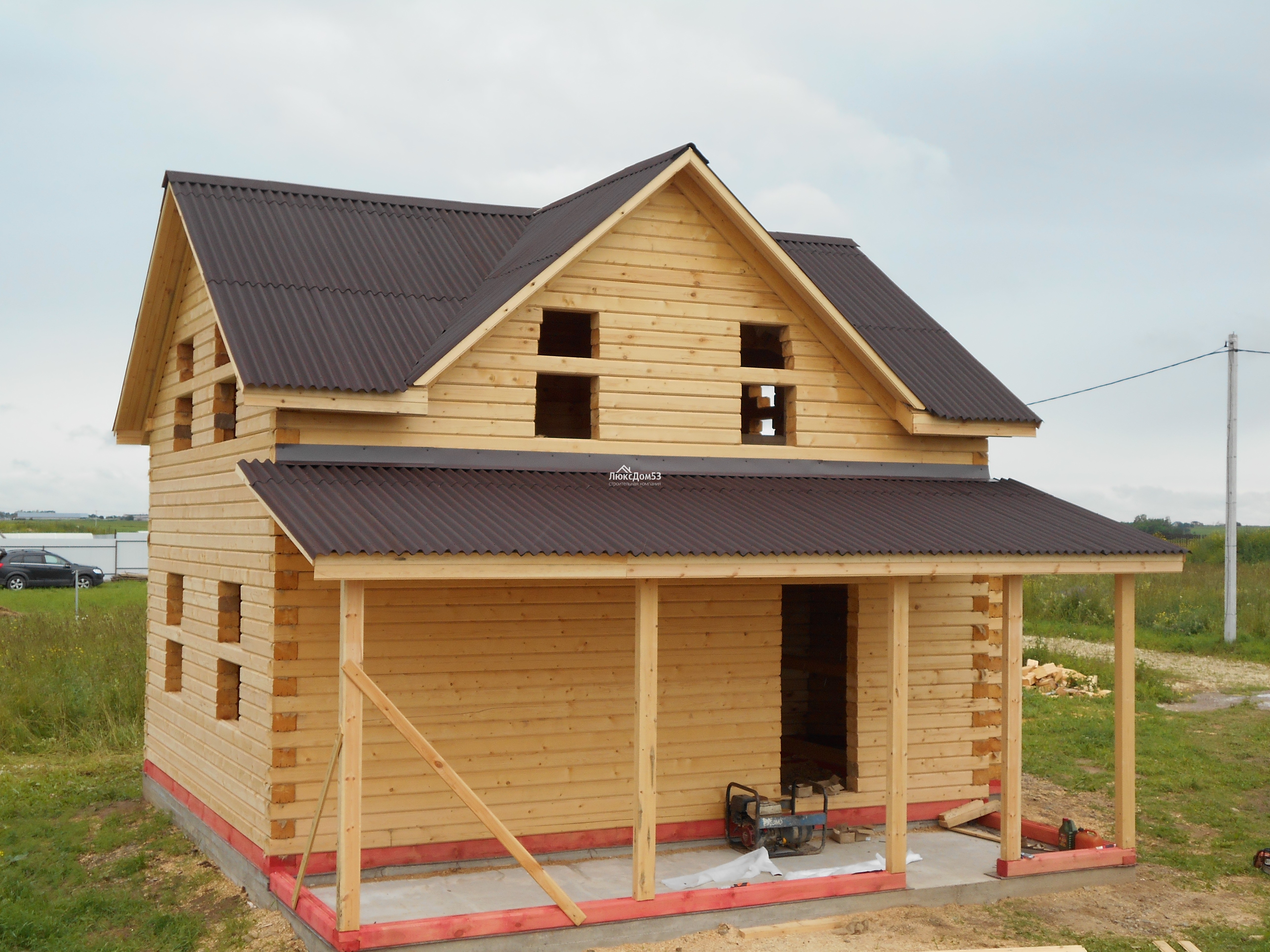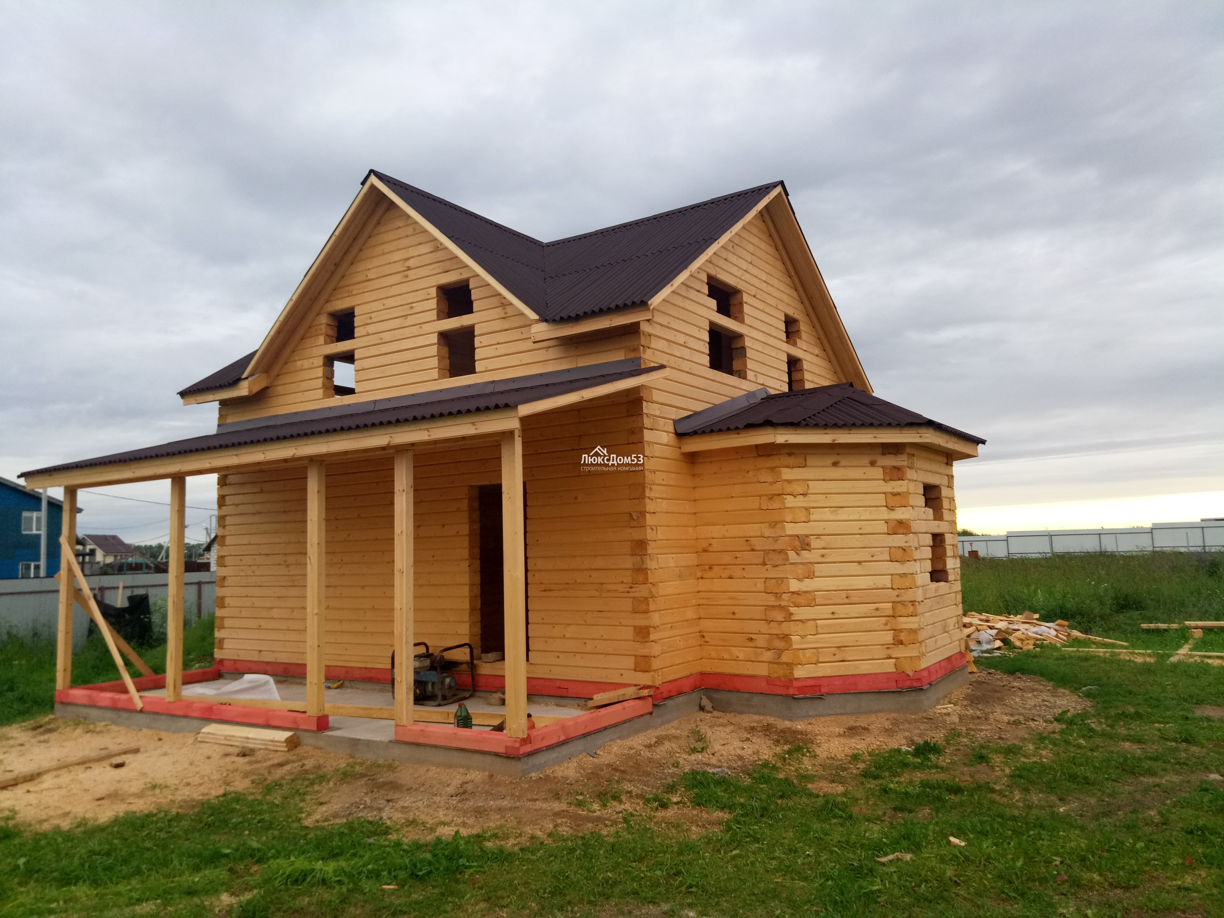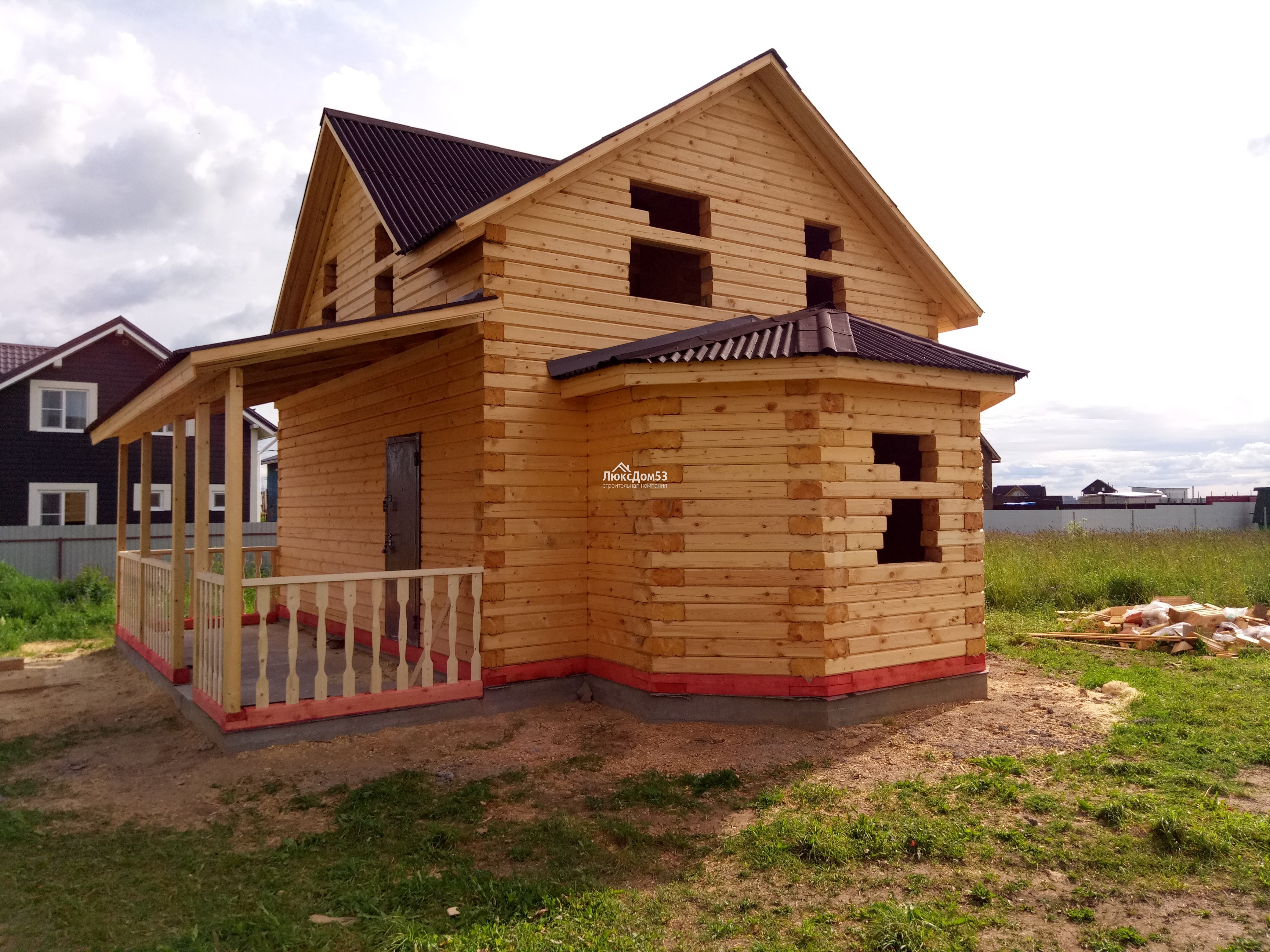 Дом под усадку из проф.бруса 8х9м Проект Д-8, Баня под усадку из проф.бруса 7.5х6м Проект Б-24.