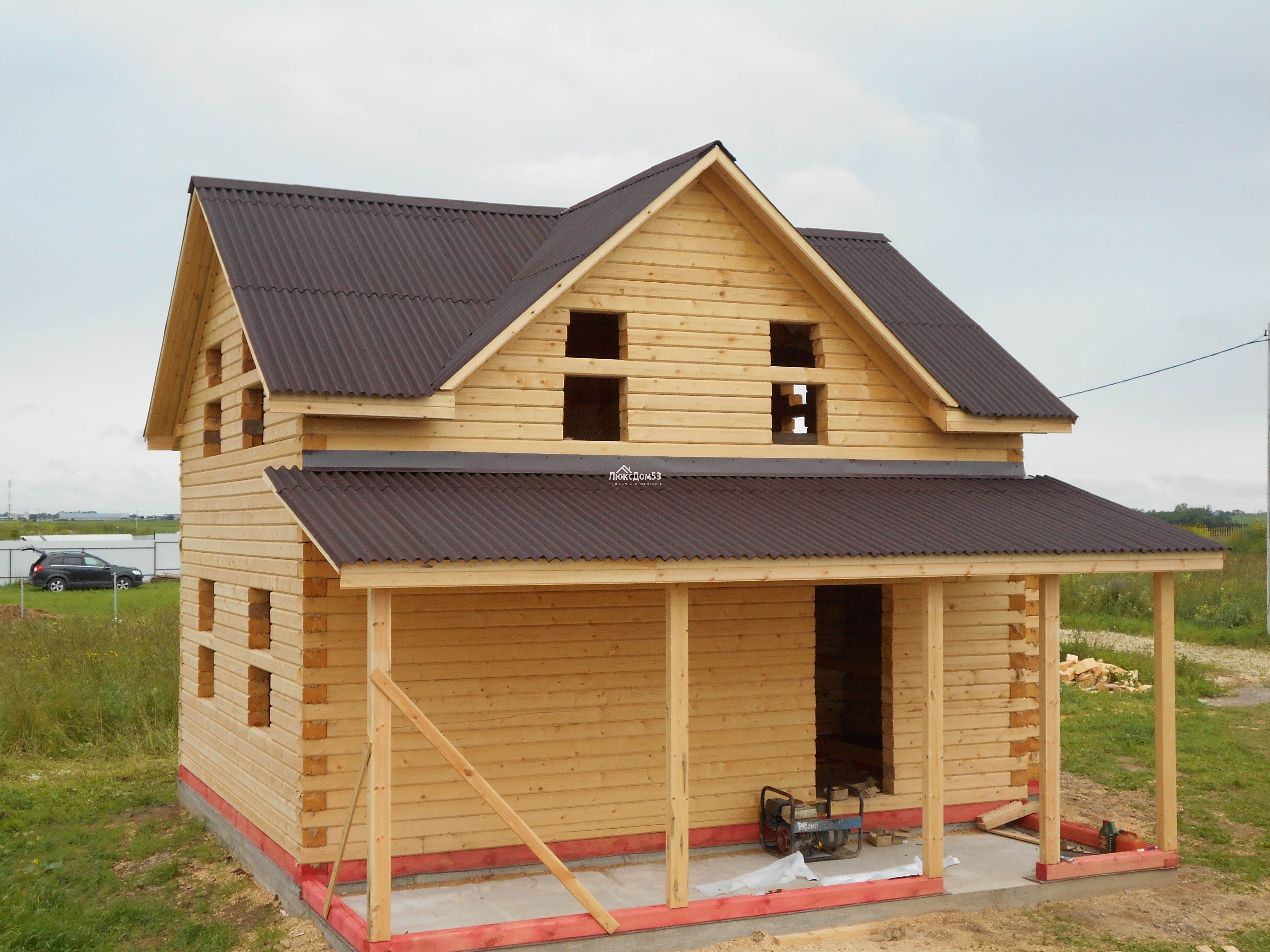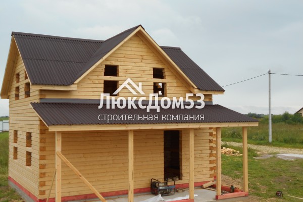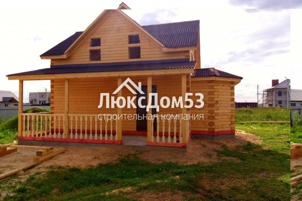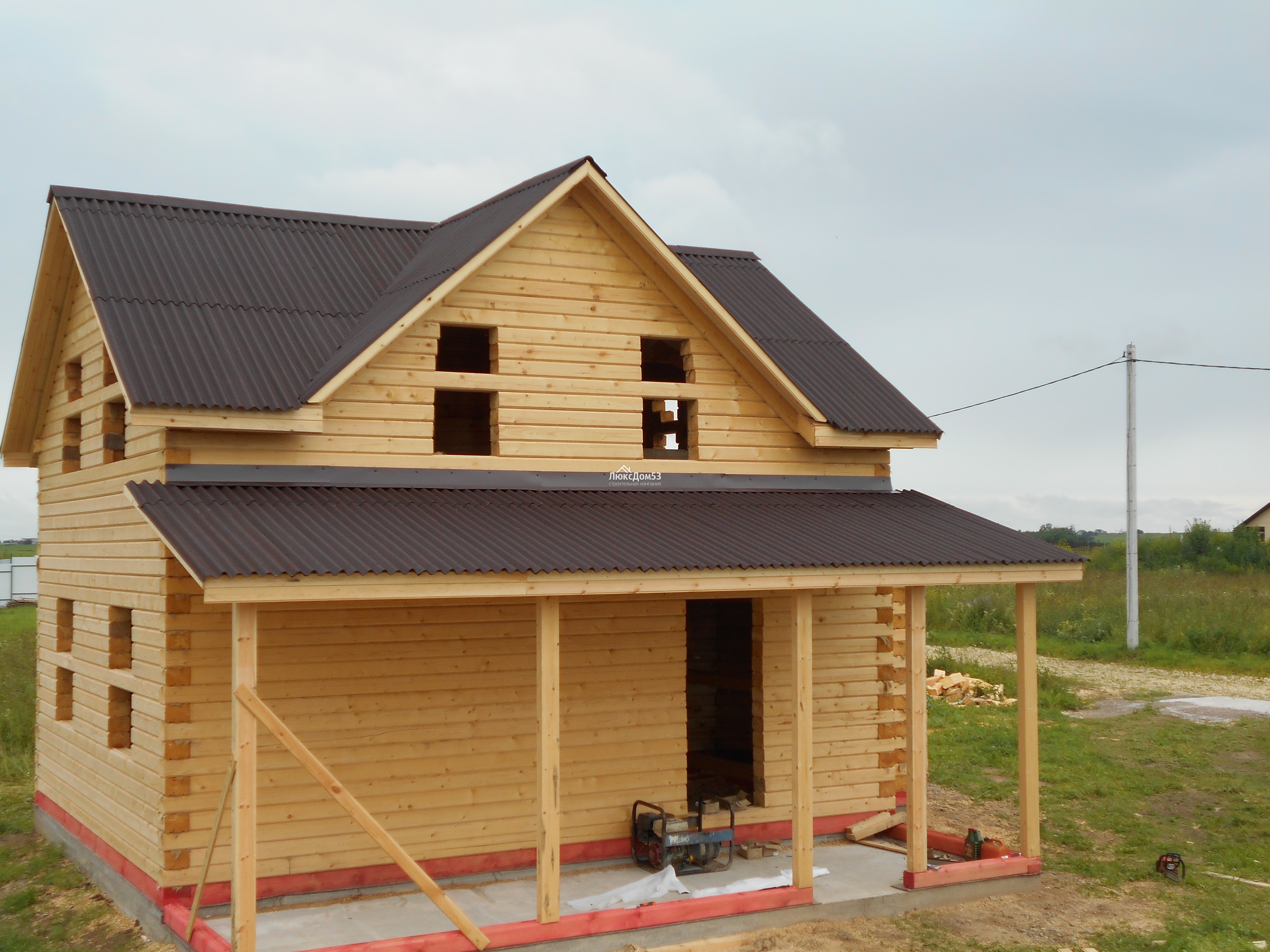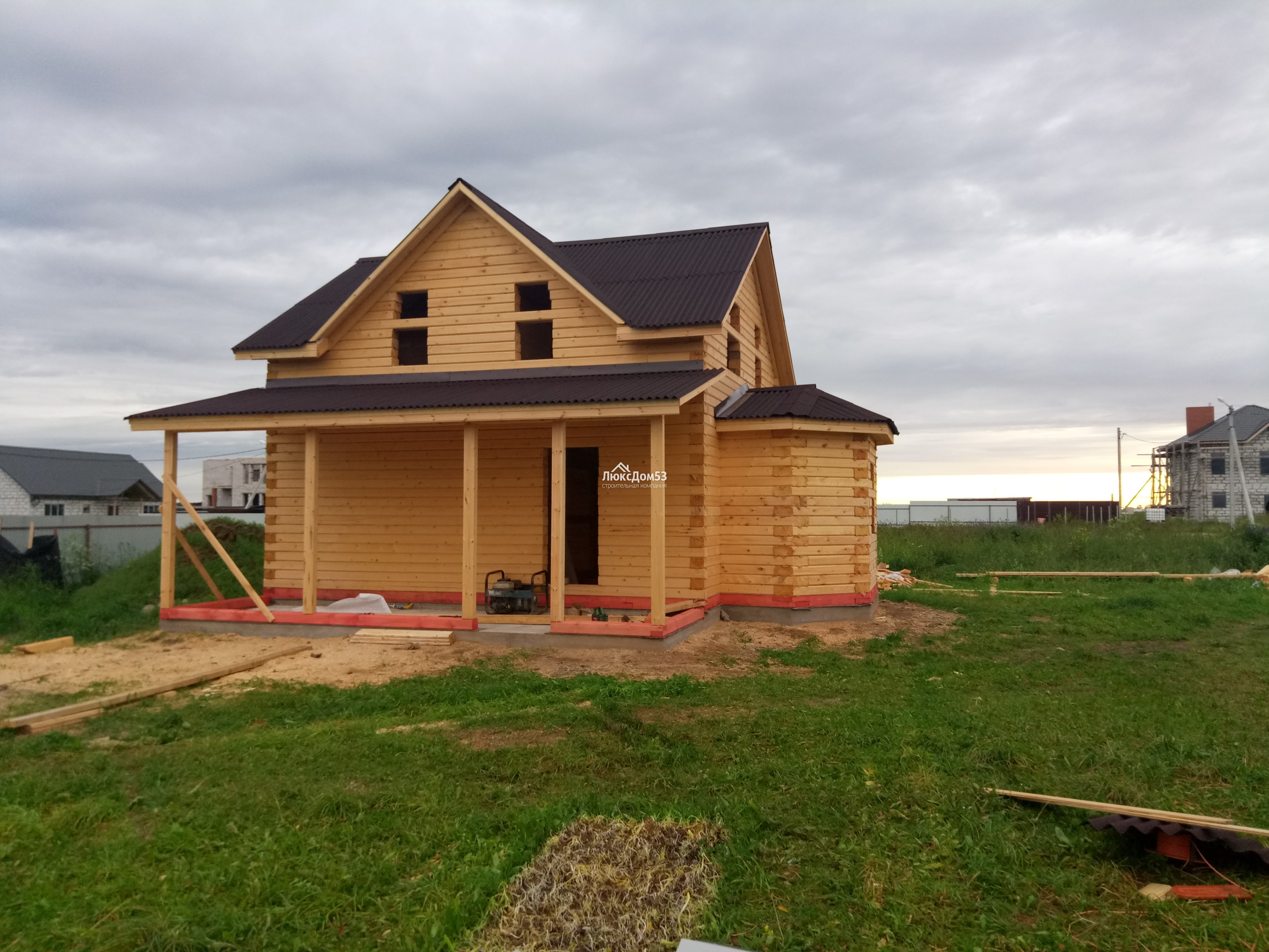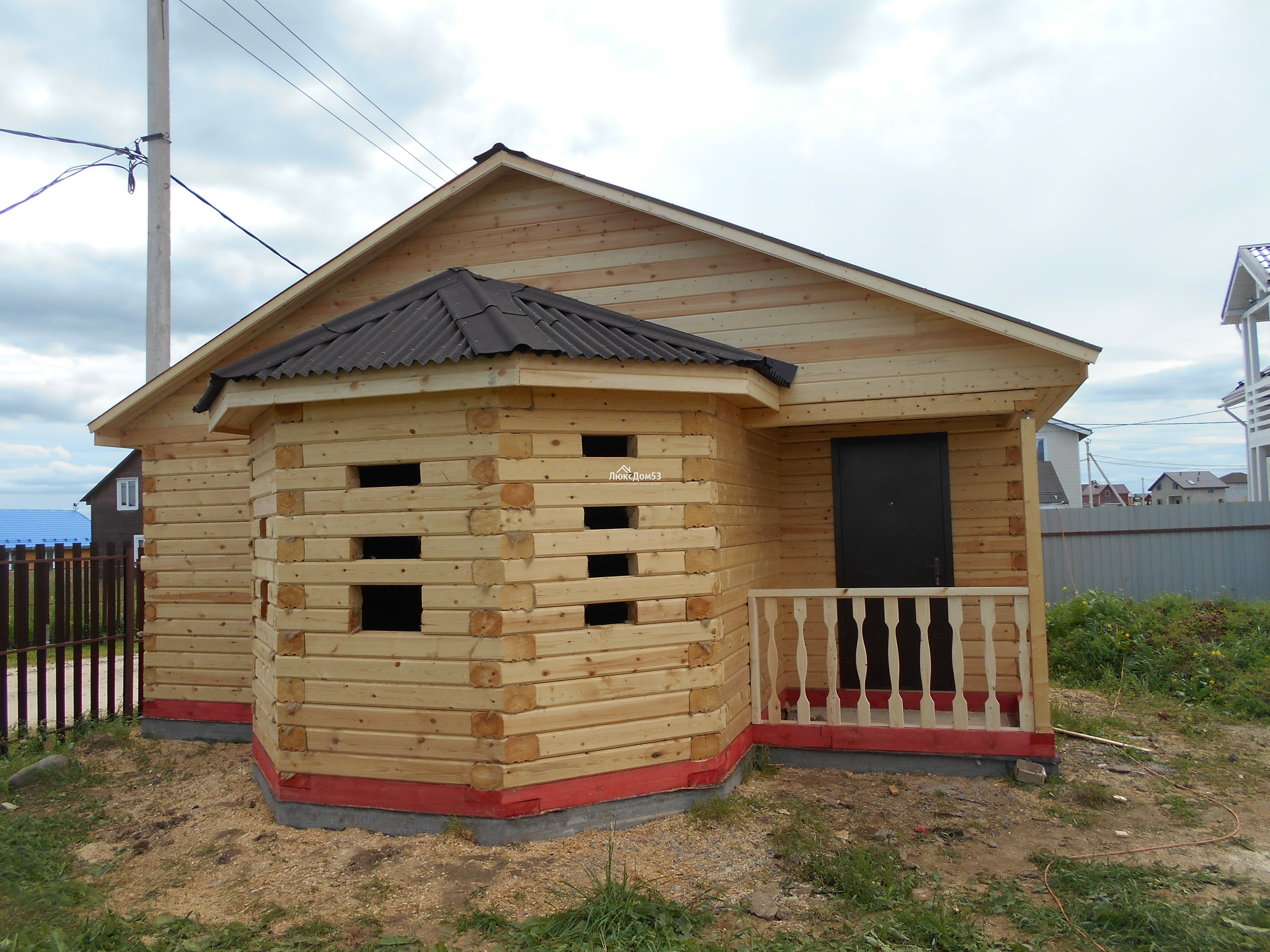 Дом под усадку из проф.бруса 8х9м Проект Д-8, Баня под усадку из проф.бруса 7.5х6м Проект Б-24.