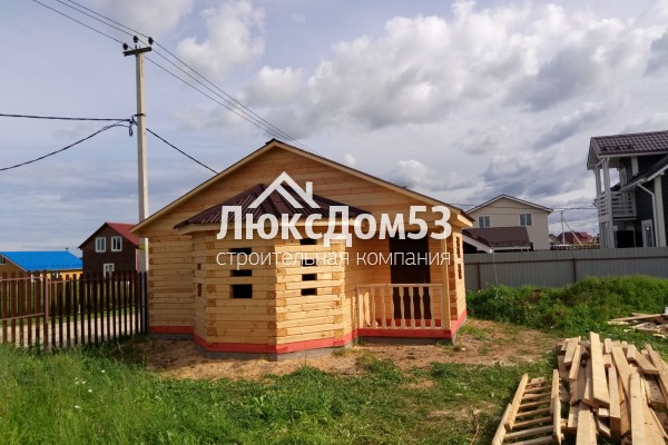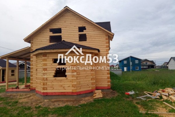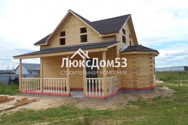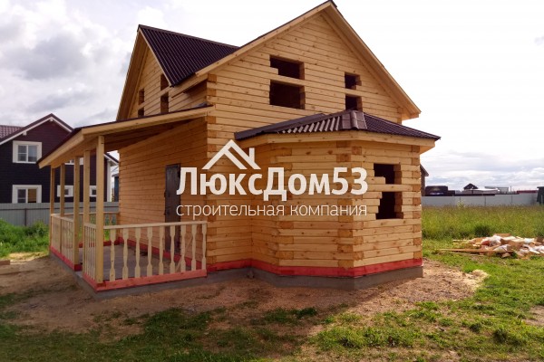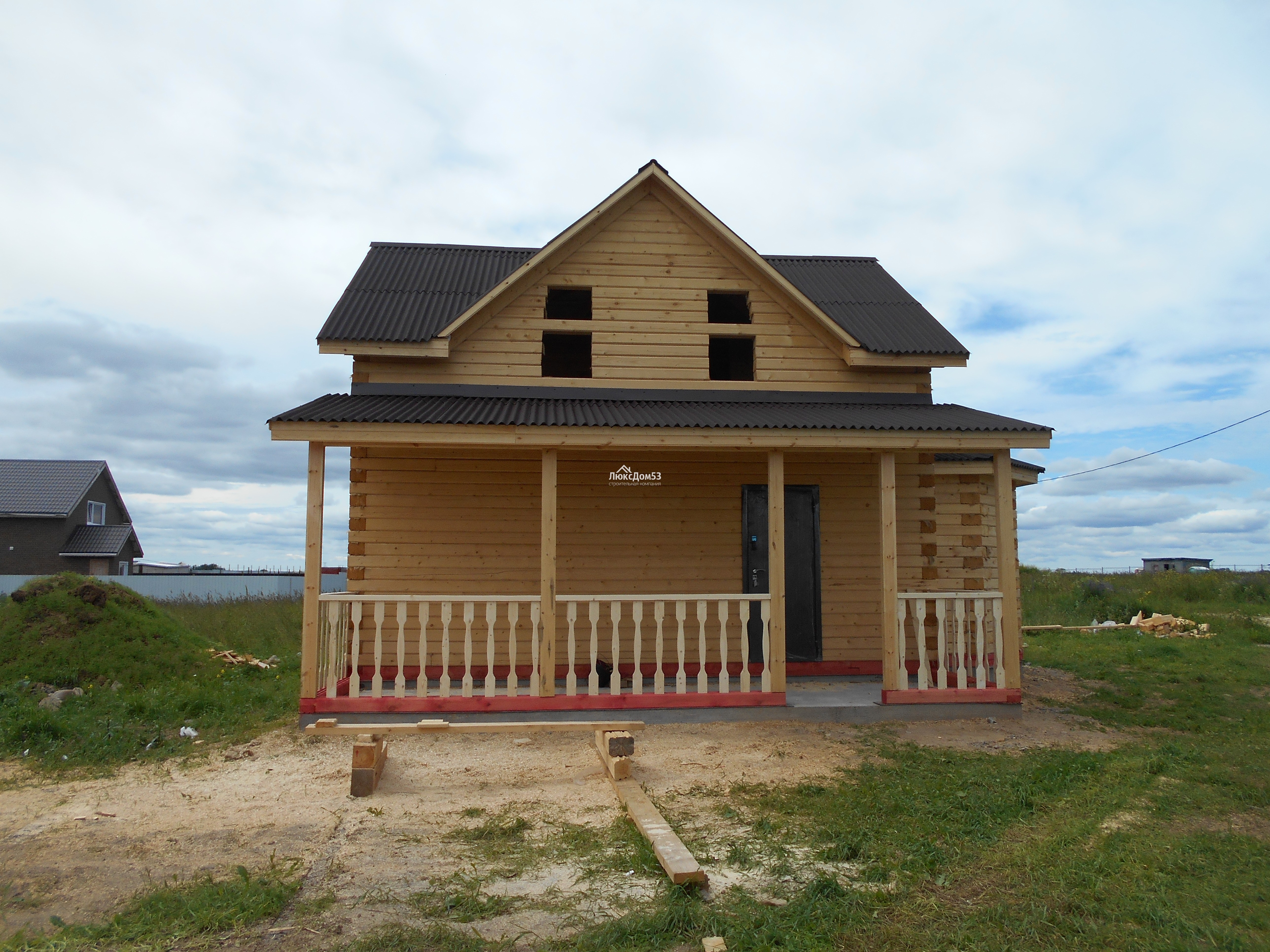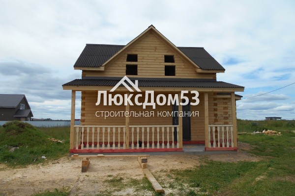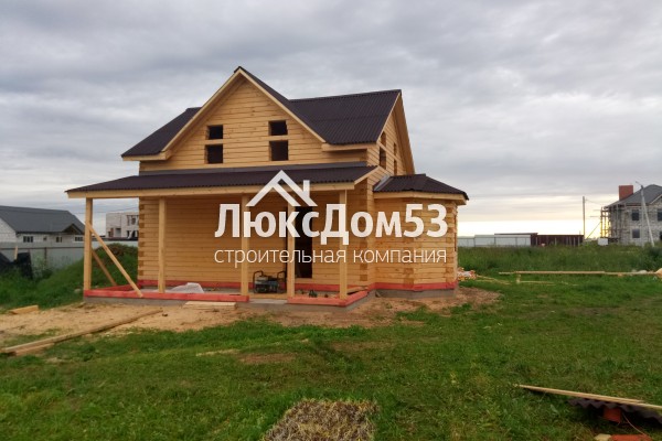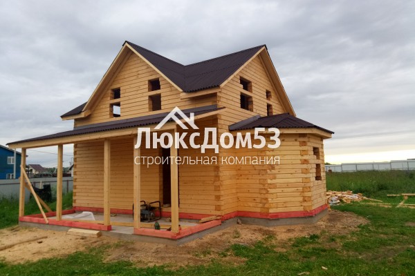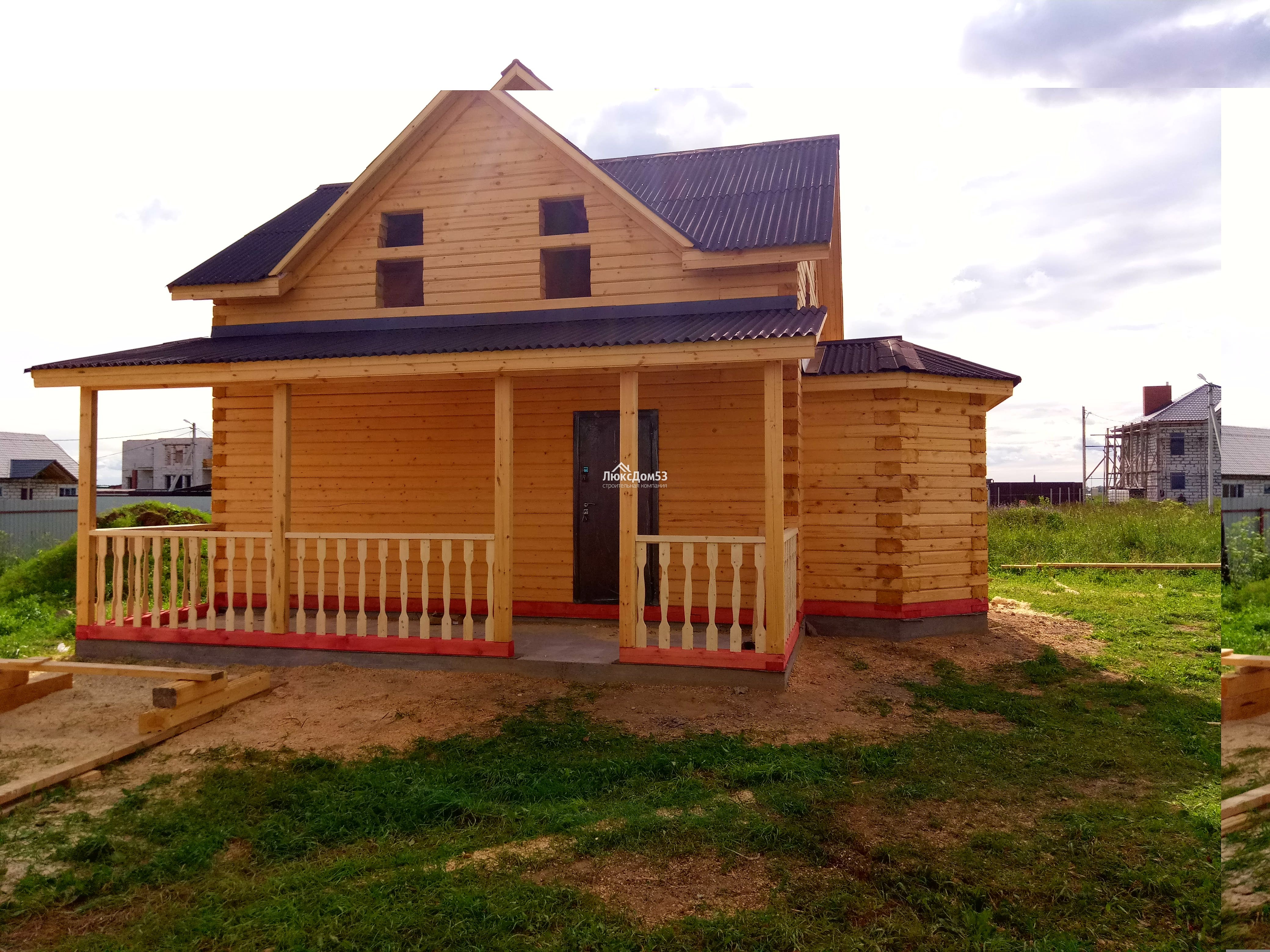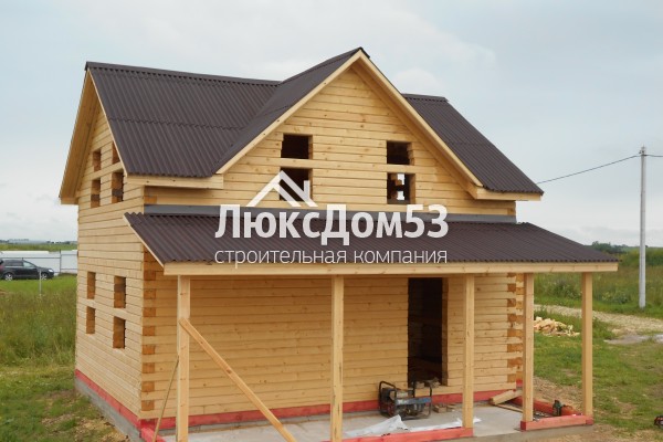 Дом под усадку из проф.бруса 8х9м Проект Д-8, Баня под усадку из проф.бруса 7.5х6м Проект Б-24.